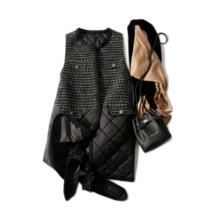 軽量中綿コート ツイード キルティング