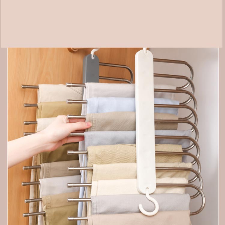 ズボンハンガー 掛け ステンレスハンガー 9連 収納 スラックスハンガー 省スペース コンパクト スラックス タオル ズボン パンツ 跡がつかない ベルト ネクタイ すべらない 多機能 滑 ハンガー