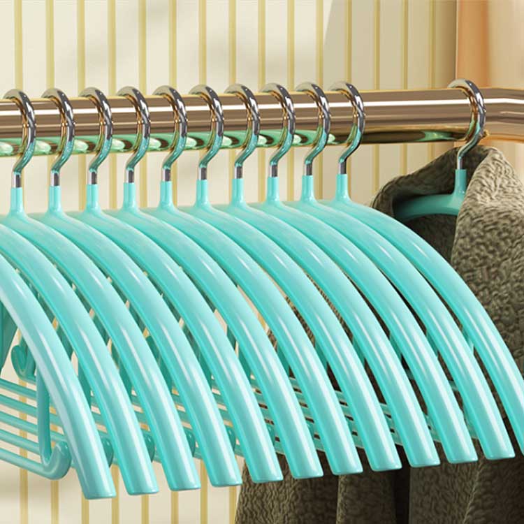 スチール素材にビニールコーティングを施し、肩が開いたブラウスや、カーディガン、ニット、キャミソールなどを掛けてもすべらない。