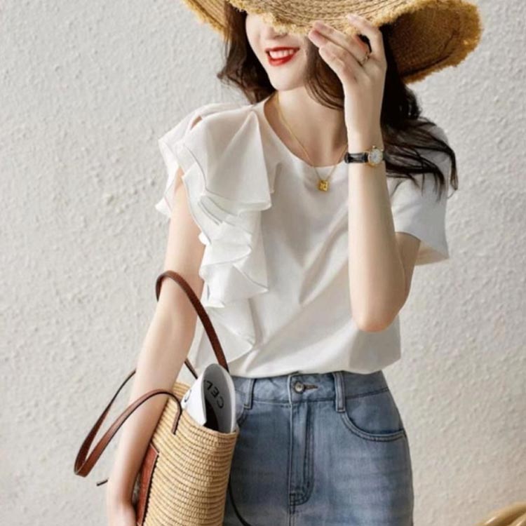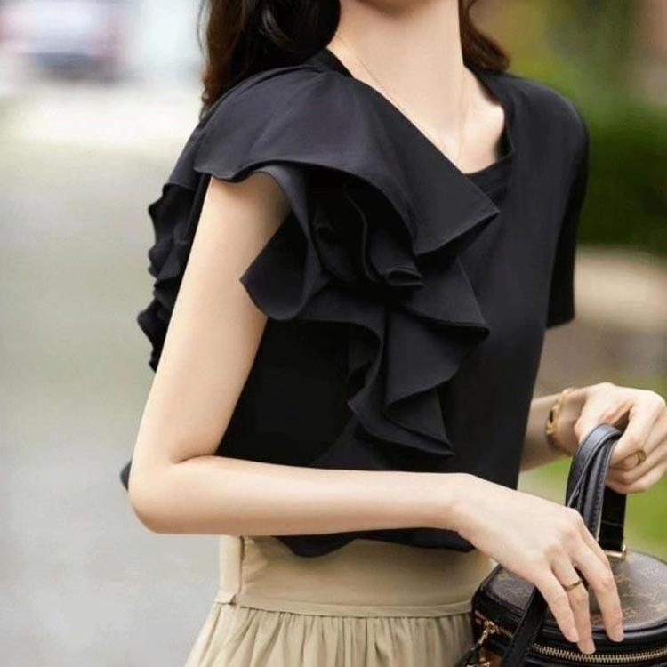 アシメ カットソー 半袖 半袖Tシャツ レディースファッション 通販 ホワイト ブラック S M L XL 2XL