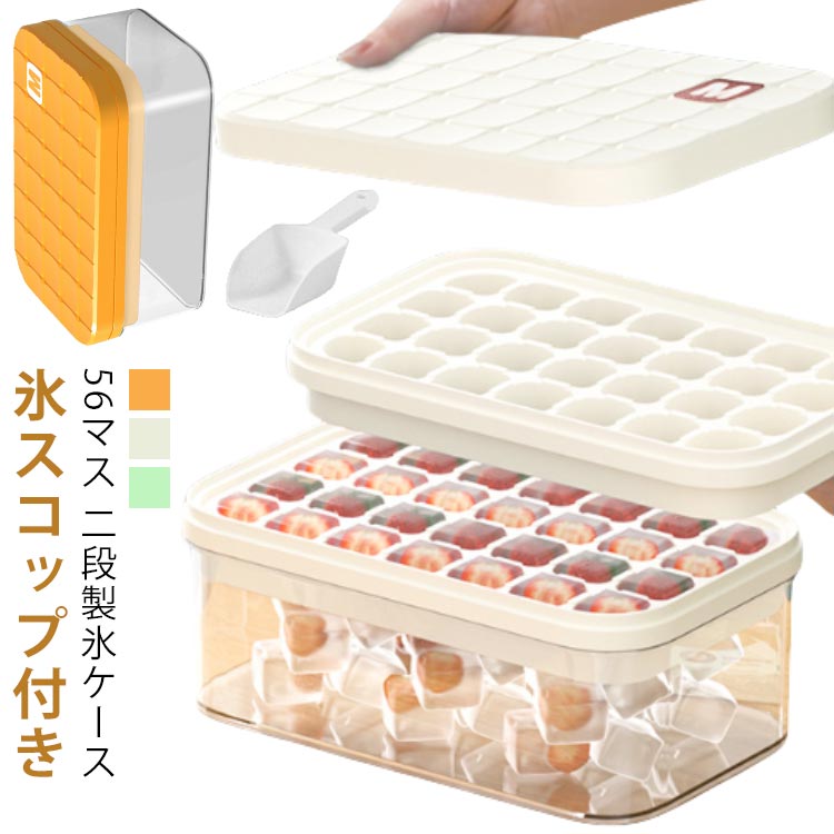 氷スコップ付き 製氷機 2段 大容量 56マス 取り出しやすい 製氷皿 シリコン 保存ケース アイストレー 製氷ケース 製氷 大量 夏休み 省スペース 蓋付き 氷 積み重ね可能 製氷器 冷 超低温耐性