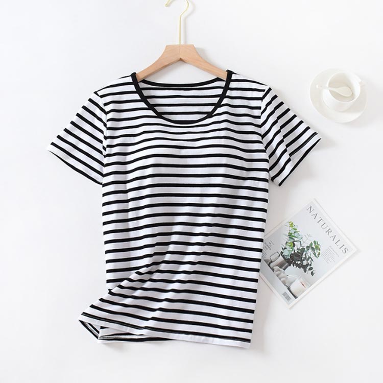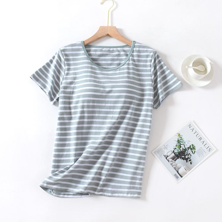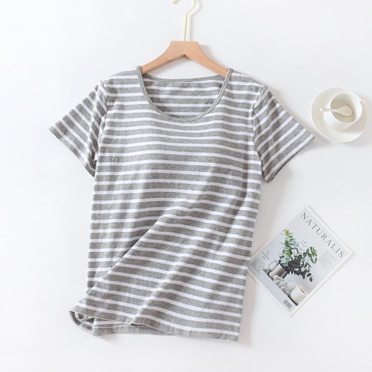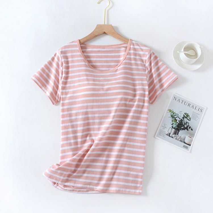 カップ付き 半袖 カップ付きTシャツ 綿 ボーダー インナー コットン カットソー ナイトブラ ブラ付き 夏 前のみ ルームウェア 肌着 Tシャツ ゆったり ブラトップ 半袖Tシャツ 部 締め付けない