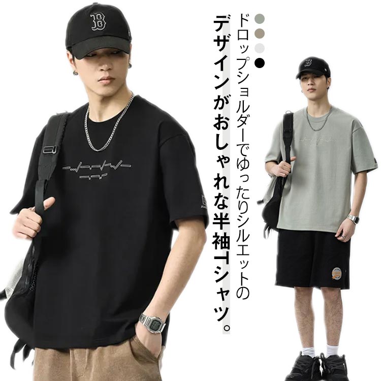 ゆったり 春 おしゃれ メンズ 夏 カ トップス Tシャツ カットソー 通販 ブラック ホワイト グレー×ベージュ グレー×グリーン M L XL 2XL 3XL 4XL