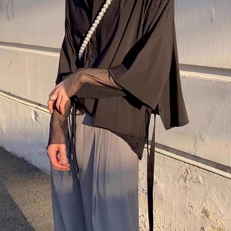 シアースリーブ ドッキングシャツ ボウタイシャツブラウス