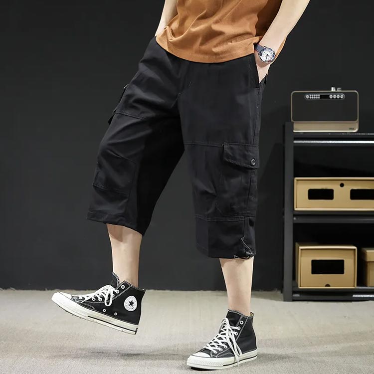 ゆったり カーゴパンツ 春夏 クロップ メンズファッション 続々登場 ダークベージュ イエロー ネイビー ブラック カーキ ダークグレー ブラック迷彩 M L XL 2XL 3XL 4XL 5XL