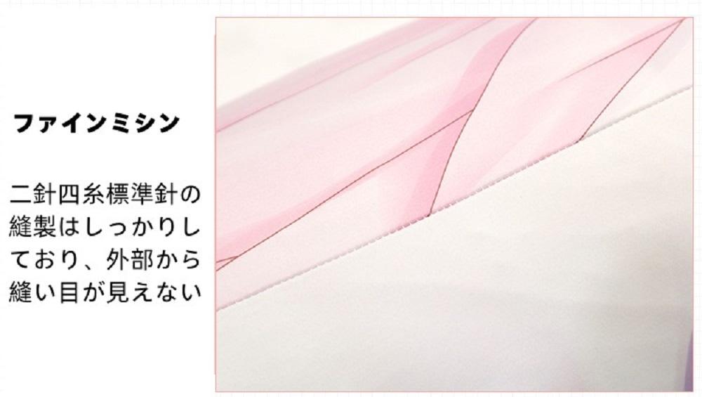 ピーチスキンの特徴: 1. 印刷がとても綺麗で光沢があります。肌触りは抜群で触るとツルツルしているのが特徴です。2. 印刷面が鮮やかなので抱き枕としてはもちろん、壁掛けとしてもご利用いただける為、非常に人気が高い生地となっています。