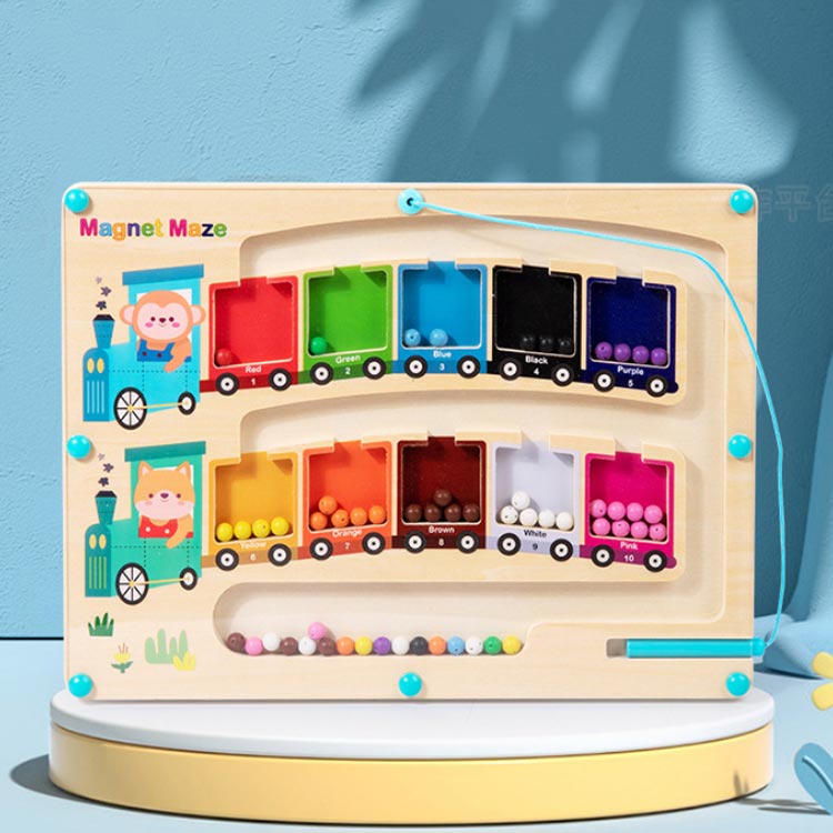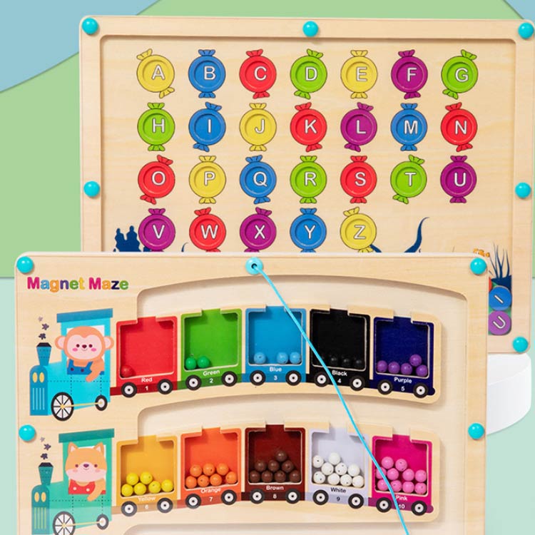 【2-in-1 マグネットビーズボード 】片面がカラー電車、もう片面がアルファベットです。マグネットビーズを動かして色や数に合わせることで、 色の認識から空間形成スキルまで学びます。楽しさを倍増した2-in-1マグネットボードは、遊びと教育に最適です!