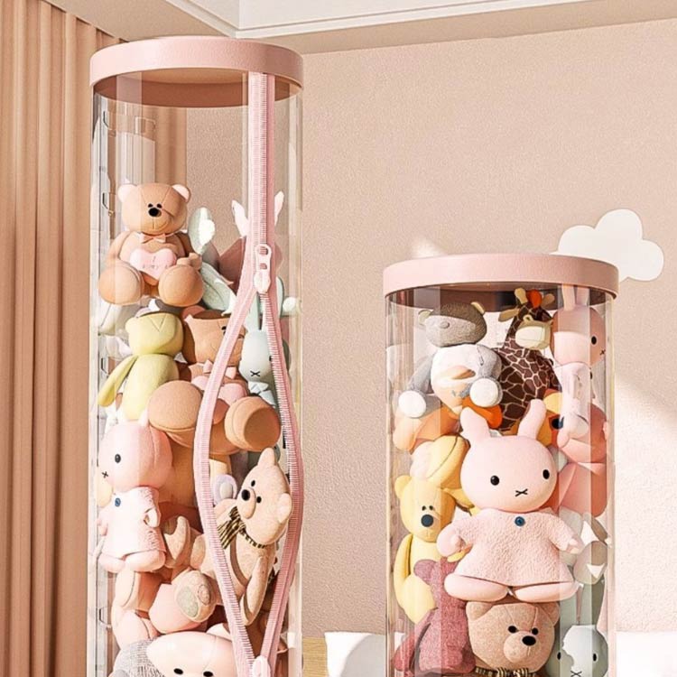 透明円柱のぬいぐるみ収納ケース 抱き枕