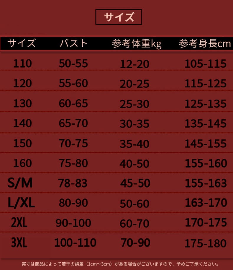 サイズ: 110cm 120cm 130cm 140cm 150cm 160cm 大人S 大人M 大人L 大人XL 大人2XL 大人3XL