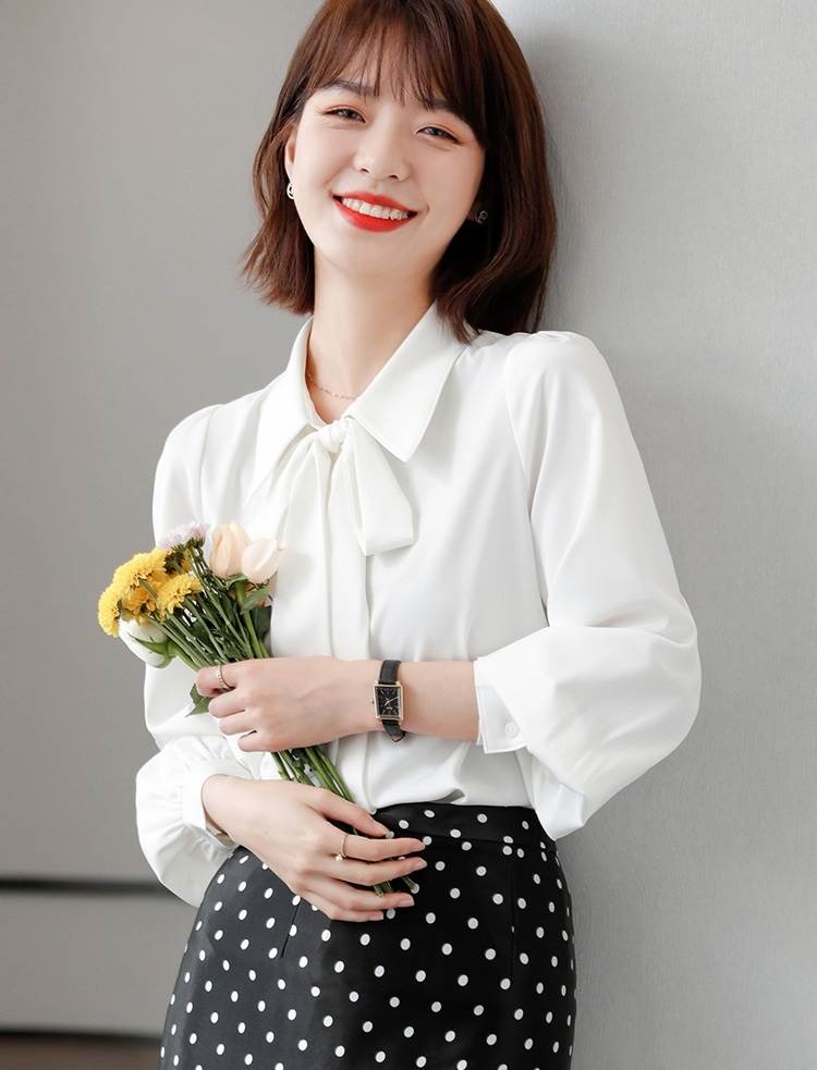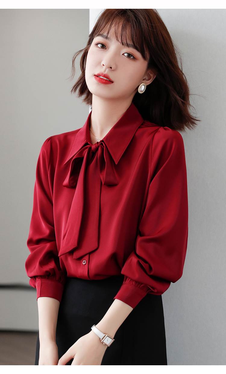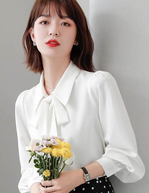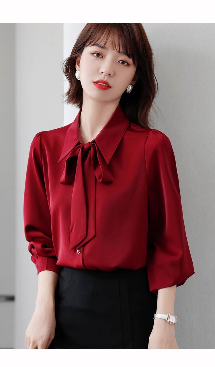 シアースリーブ ドッキングシャツ ボウタイシャツブラウス