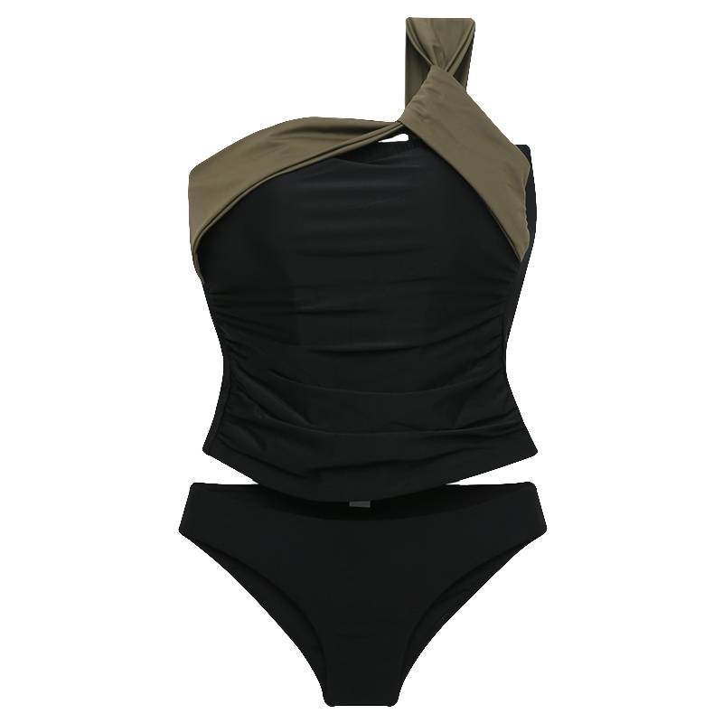 水着 ビキニ スイムウェア 体系カバー水着 ワンショルダー ワンショル パッド付き リボン 胸元 谷間 盛れる きれいめ シンプル ナチュラル 大人 大人っぽい おしゃれ お洒落 主役級 存在感 クール モード系 スタイリッシュ モダン かっこいい 無地 10代 20代 30代 レディース ママ 女の子 夏 海 ビーチ プール リゾート 体系カバー 美脚 脚長 着痩せ スタイルアップ 美スタイル 韓国 韓国系 ファッション コーデ スタイル 新作 M L XL 黒 ブラック バイカラー