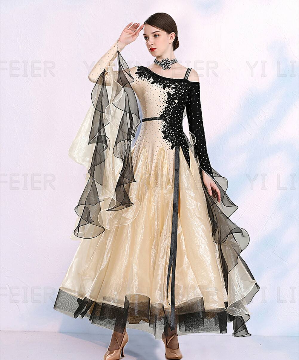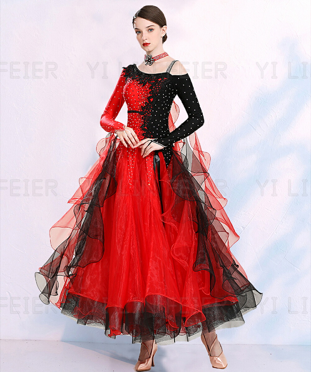 ★こちらもそんな人気を予想させるデザインです。ダンス発表会用ドレス ワルツ ラテン系 豪華 ダンスドレス ワルツ用 社交ダンスドレス 発表会用 競技ダンス
