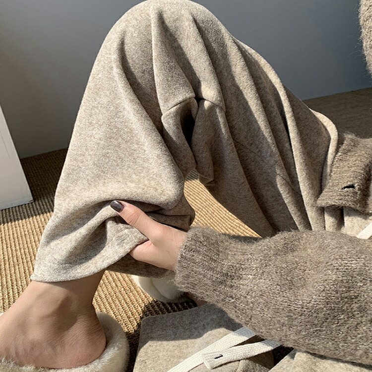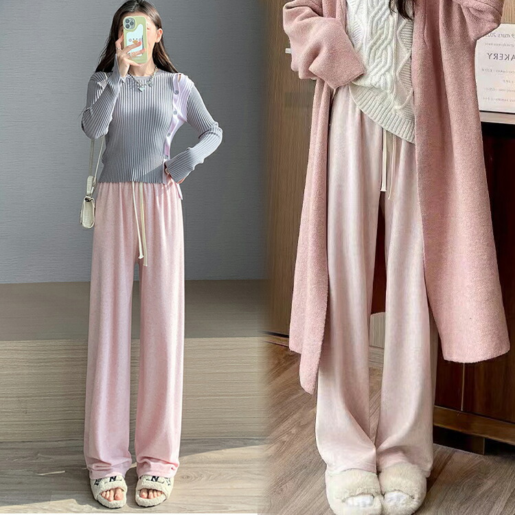 パイルストレートパンツ レディース ボトムス パイル生地 ストレートパンツ 長ズボン ウエストゴム 楽ちん ゆったり 美脚パンツ ふわもち カジュアル きれいめ