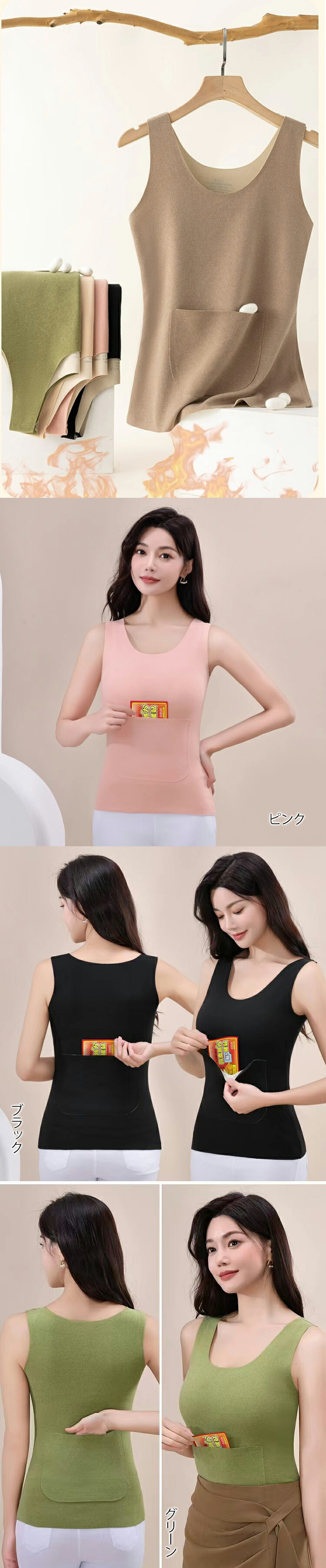 ■ダブルポケットで温かい。防寒シームレスタンクトップ■
