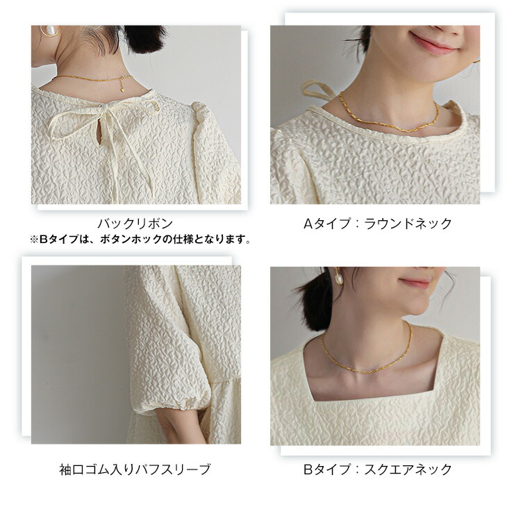 サイズ: A:ラウンドネック / M A:ラウンドネック / L B:スクエアネック / M B:スクエアネック / L