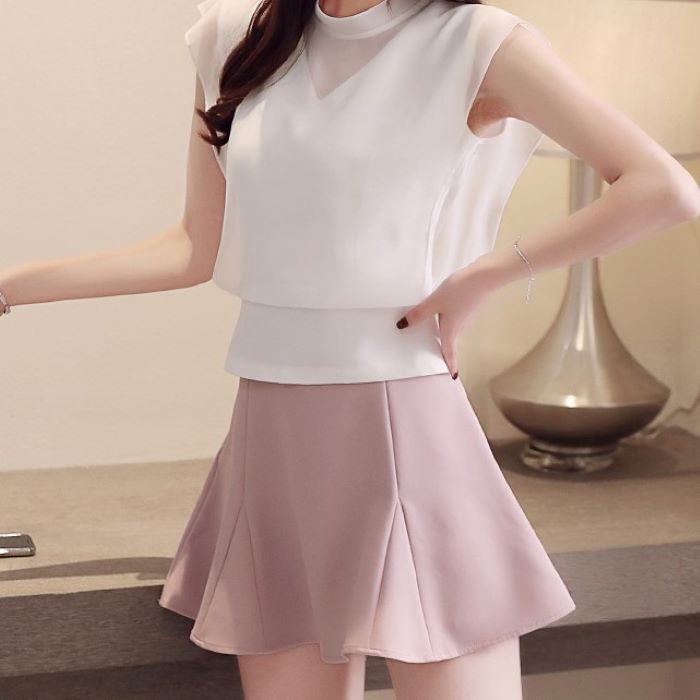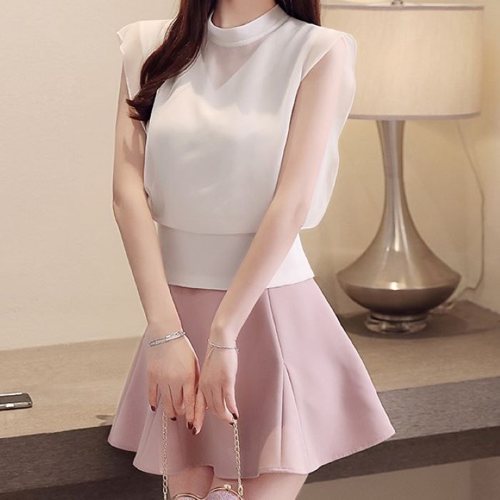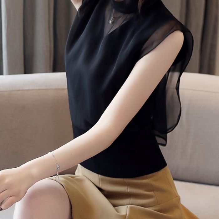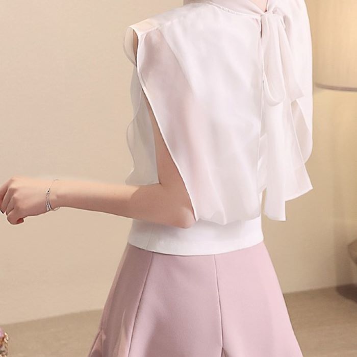 シアースリーブ ドッキングシャツ ボウタイシャツブラウス