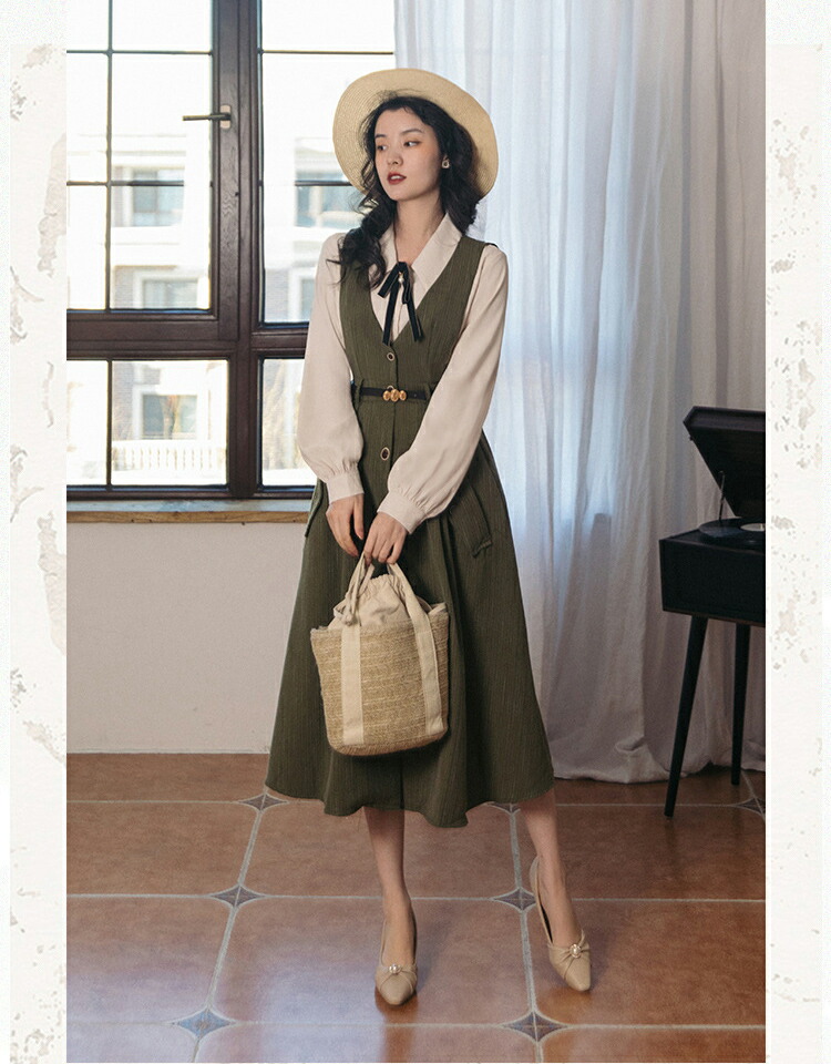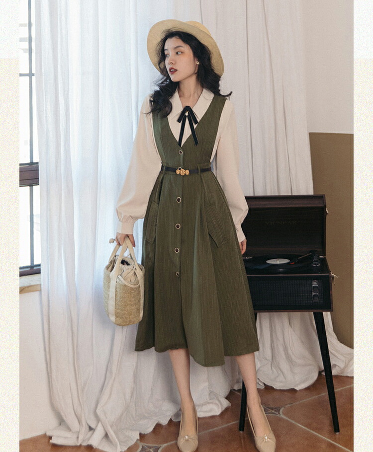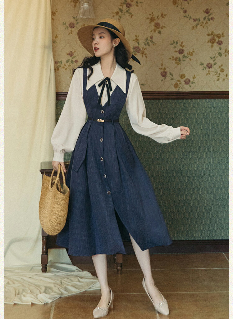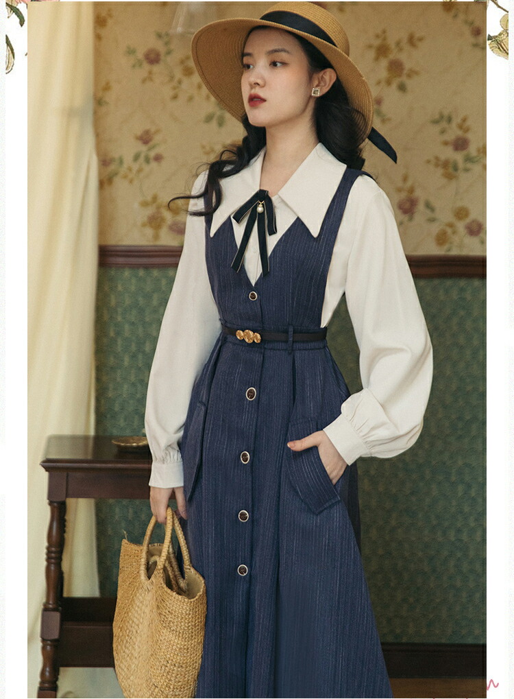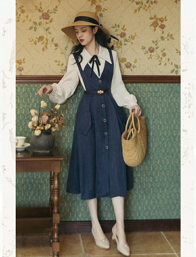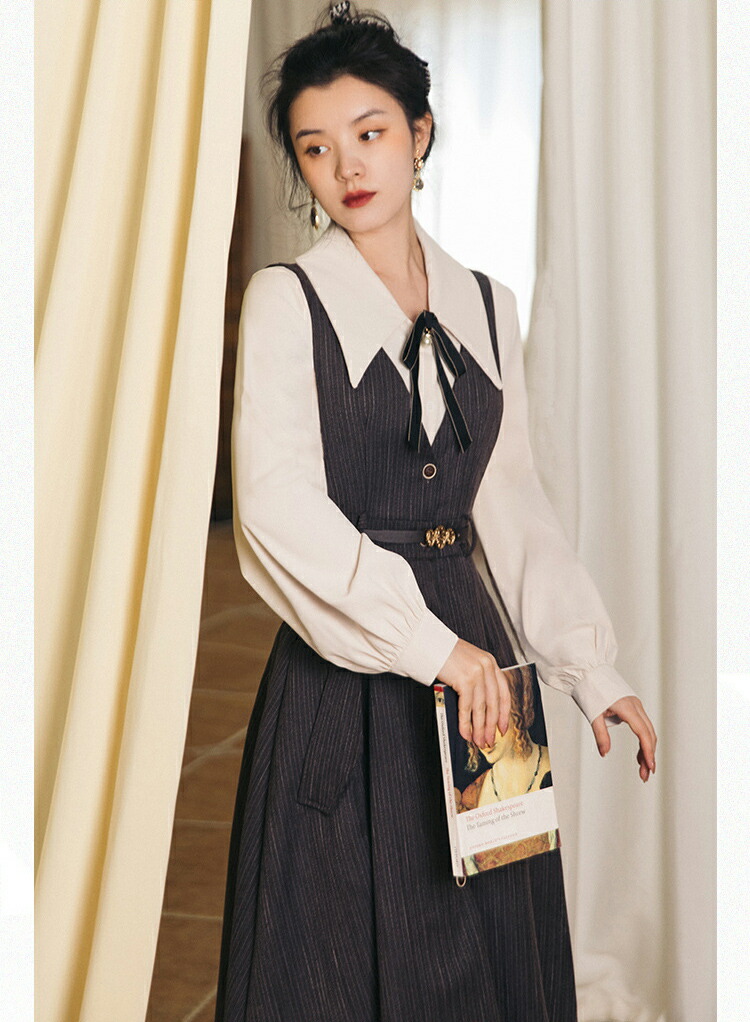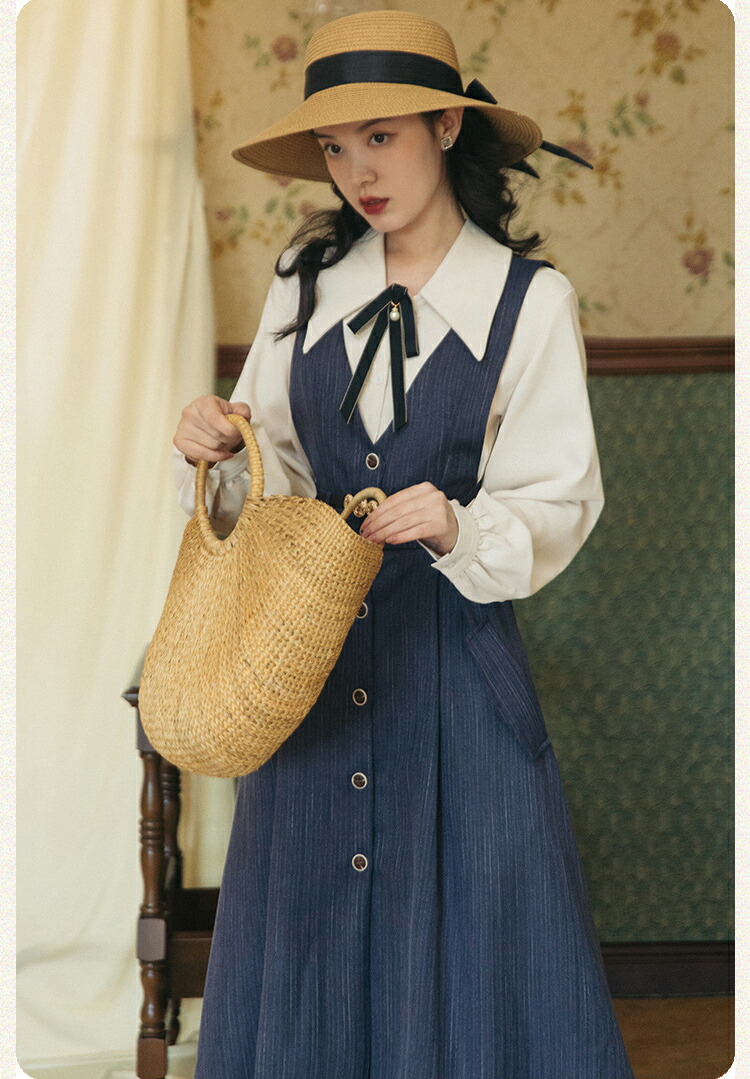 シアースリーブ ドッキングシャツ ボウタイシャツブラウス