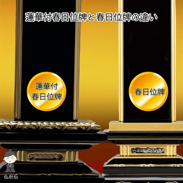 「春日位牌」の台座上部に「蓮華」の彫刻が付いたワンランク上のお位牌となります。
