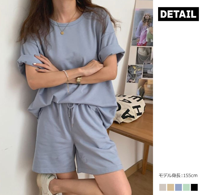 デイリーにも、おうち時間にも使える、トップスとショートパンツのセットアップ。