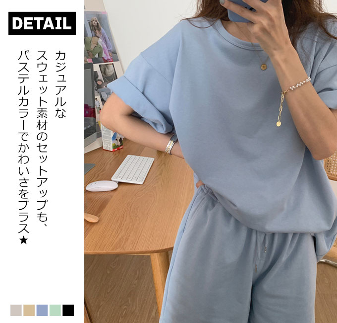 セットアップ スウェット Tシャツ パンツ スウェットセットアップ 上下セット スウェット上下 ルームウェア ラウンジウェア 部屋着 ワンマイルウェア スウェットパンツ パジャマ 短パン ホームウェア 2点セット レディース カジュアル シンプル かわいい きれいめカジュアル ヘルシー スポーティー ガーリー おしゃれ 春 夏 秋 春夏 春秋 SS おうち時間 ちょっとそこまで ワンマイル 普段使い デイリーユース タウンユース 大人 学生 大学生 高校生 中学生 ママ OL コットン ポリエステル 杢グレー クリーム ブルー グリーン ブラック グレー ライトイエロー 青 水色 緑 ライトグリーン 黒 セット商品 半袖 短パン ショートパンツ ハーフパンツ クルーネック ゆったり ワイド ワイドシルエット ポケット ポケット付き 薄手 五分袖 着心地が良い ラクチン 楽ちん プチプラ コスパ 安い 韓国ファッション 韓国 SNS映え インスタ映え 骨格ナチュラル 骨格ストレート 骨格ウェーブ SNS インフルエンサー