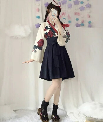 ロング着物ドレス フリル 黒 M コス