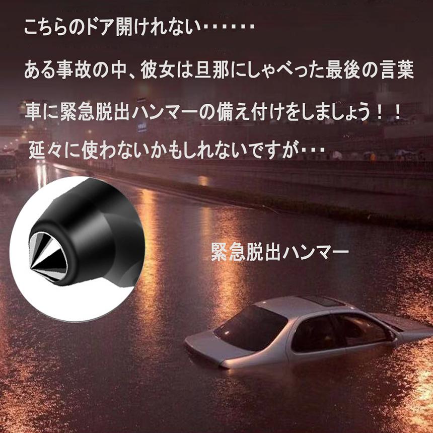 突然の事故と災害時で、活躍する脱出用ハンマーです。車載用防災,レスキューハンマーグッズです。 非常時、災害時に(ゲリラ豪雨や台風等で車内に閉じ込められた時)、車内に閉じ込められでもガラスを割って脱出できます。