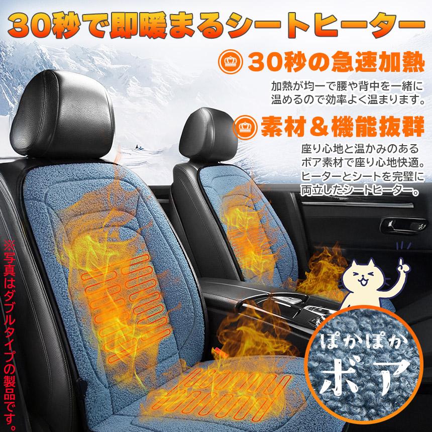 カーシート ヒーター ホットカーシート 2枚セット 12v車用 シートヒーター 運転席用 4カラー ボア ダブル 車用 即暖 シートヒーター シートカ