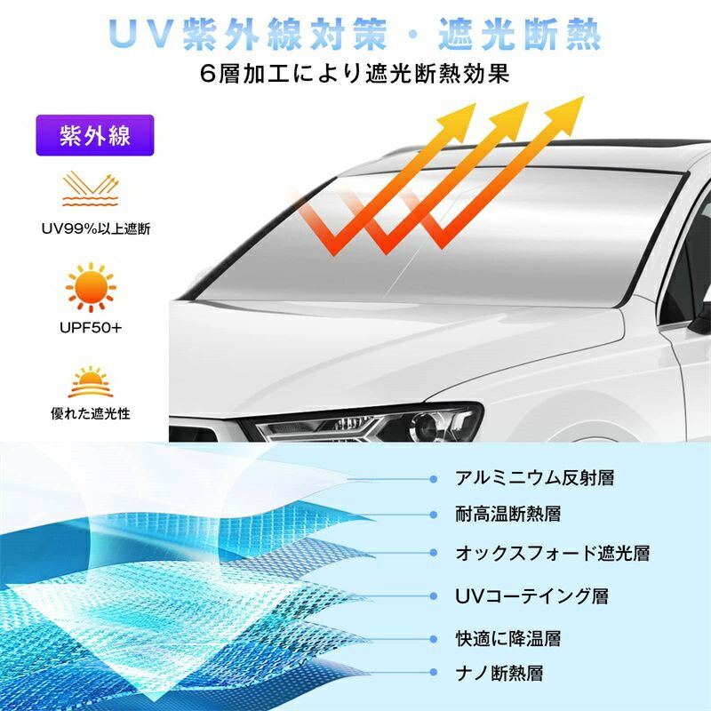 車用サンシェード 車サンシェード 車日除けフロント 自動伸縮 収納簡単 多車種対応 視線の邪魔なし