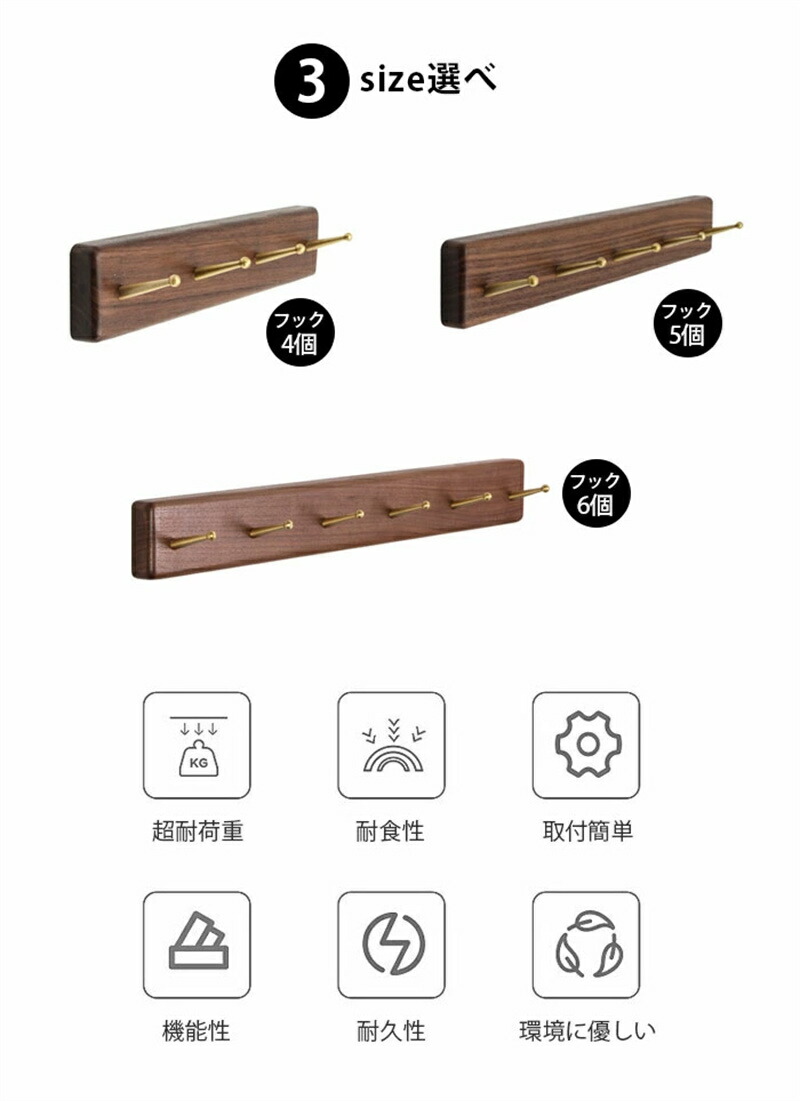 サイズ: フック4個 フック5個 フック6個