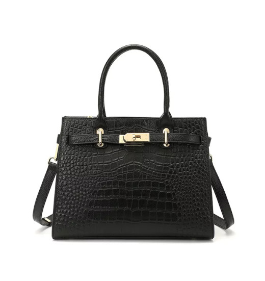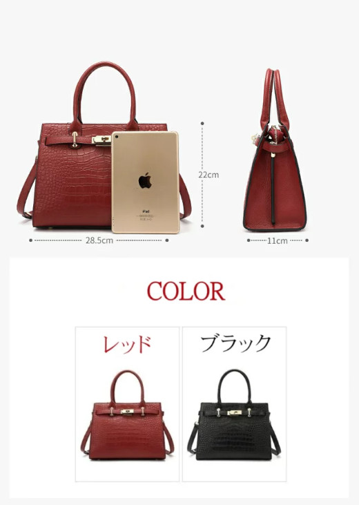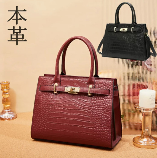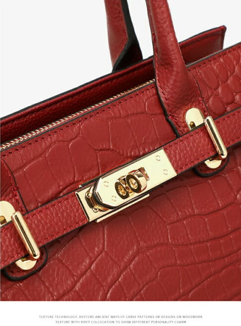 本革クロコ型押し高品質本革 牛革 クロコダイル型押し ハンドバッグ ハンドメイド 本革鞄 ショルダーバック レディース