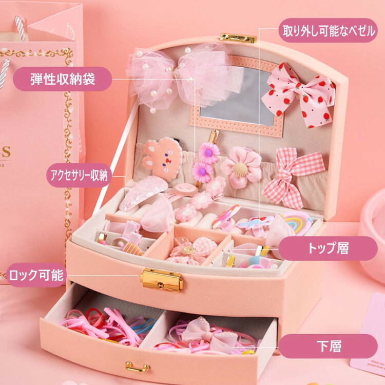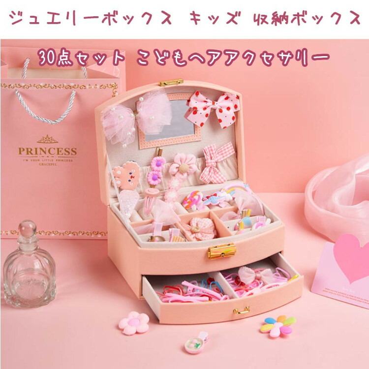 ジュエリーボックス キッズ 宝石箱 こども ヘアアクセサリー 30点セットジュエリー アクセサリー ジュエリー アクセサリー用品 収納ボックス ケース