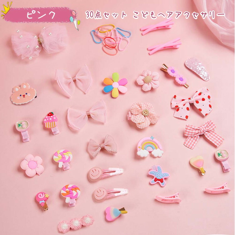 とってもキュートな子供用のアクセサリー30点セットです。入学式や卒業式など、お子様の特別な日にピッタリの可愛いヘアアクセサリー。