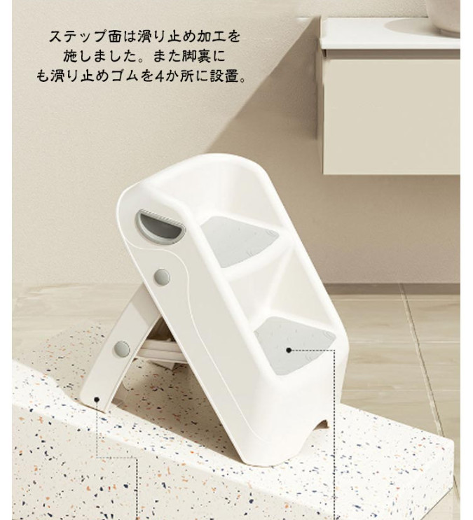 ステップ面は滑り止め加工を施しました。また脚裏にも滑り止めゴムを4か所に設置。