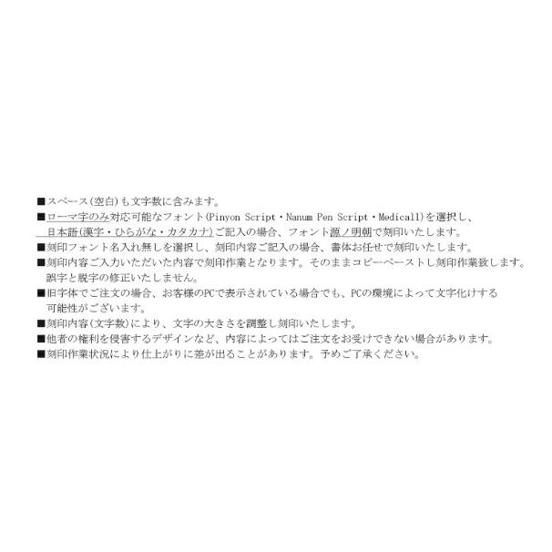 ■刻印内容ご入力いただいた内容で刻印作業となります。そのままコピーペーストし刻印作業致します。誤字と脱字の修正いたしません。