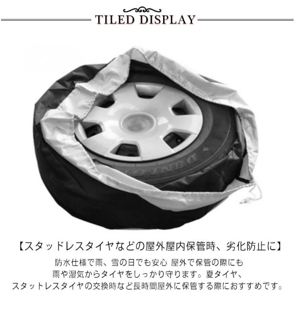 【スタッドレスタイヤなどの屋外屋内保管時、劣化防止に】防水仕様で雨、雪の日でも安心 屋外で保管の際にも雨や湿気からタイヤをしっかり守ります。夏タイヤ、スタットレスタイヤの交換時など長時間屋外に保管する際におすすめです。