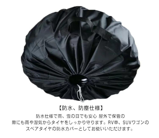【防水、防塵仕様】防水仕様で雨、雪の日でも安心 屋外で保管の際にも雨や湿気からタイヤをしっかり守ります。RV車、SUVワゴンのスペアタイヤの防水カバーとしてお使いいただけます。