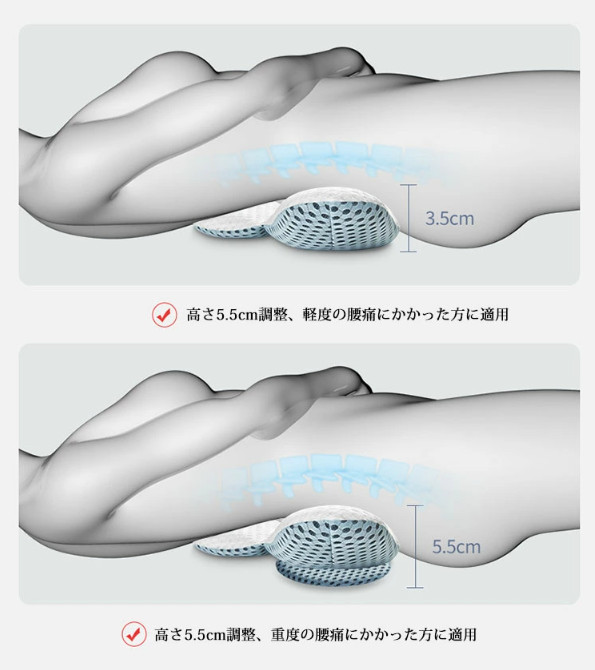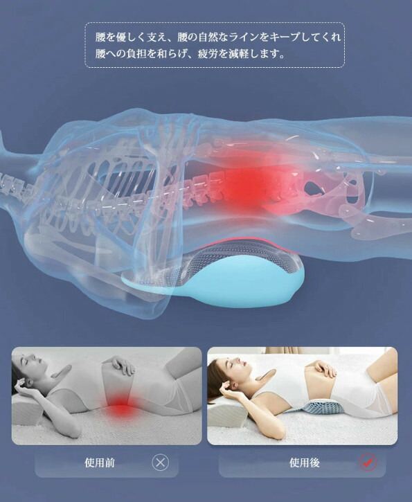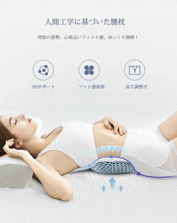 腰痛 クッショ 腰枕 腰痛対策 腰マクラ 安眠サポートン体圧分散 高さ調整可能 腰まくら 仰向き寝 横向き寝 人体工学 姿勢の矯正