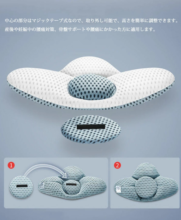 中心の部分はマジックテープ式なので、取り外し可能で、高さを簡単に調整できます。