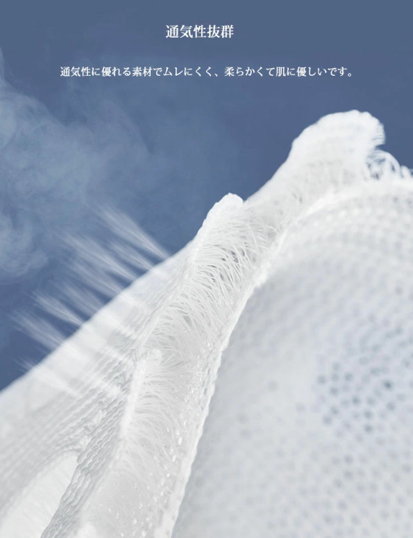 通気性に優れる素材でムレにくく、柔らかくて肌に優しいです。
