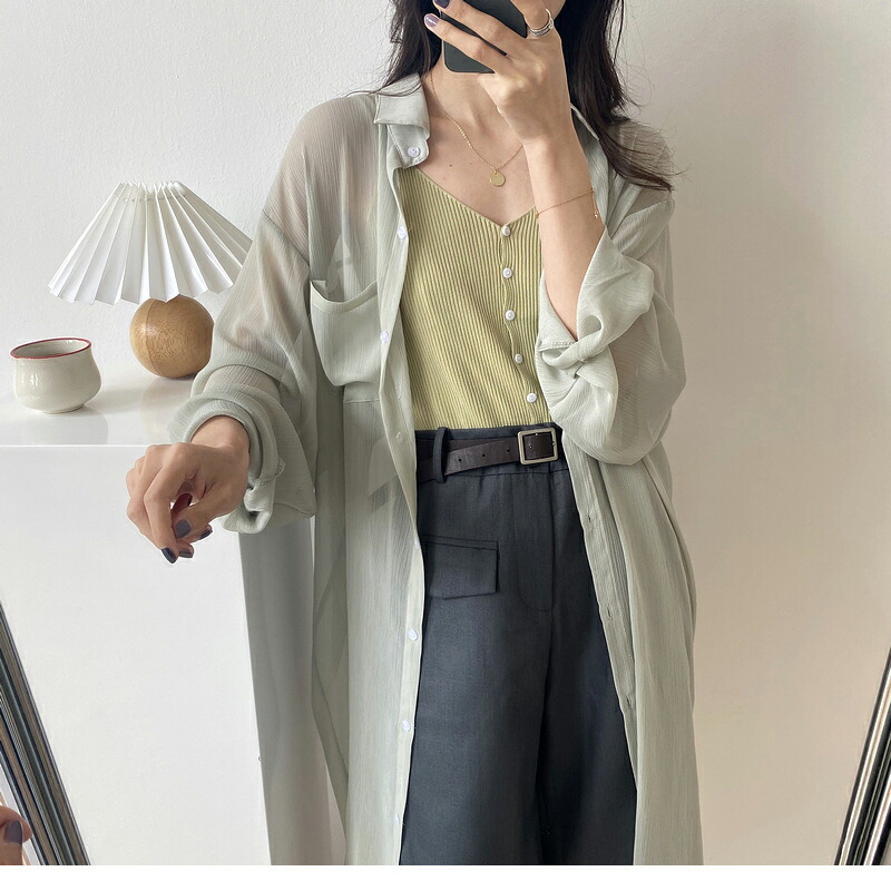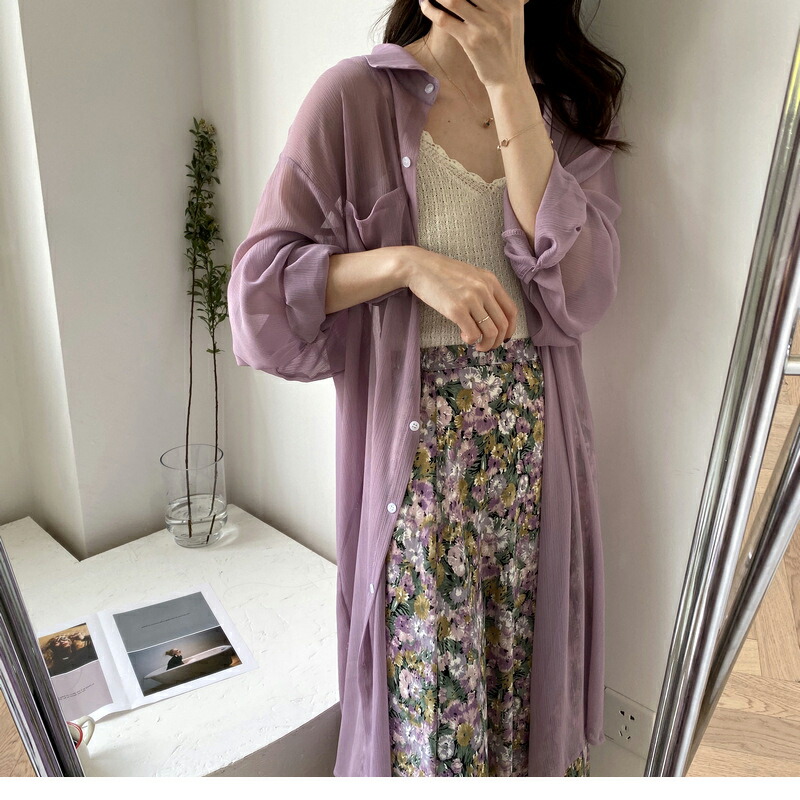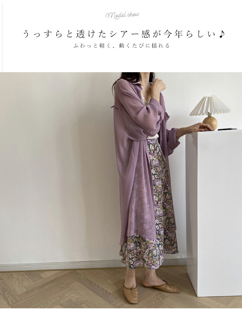 涼し気なシフォンのシアーロングシャツワンピースが入荷しました。