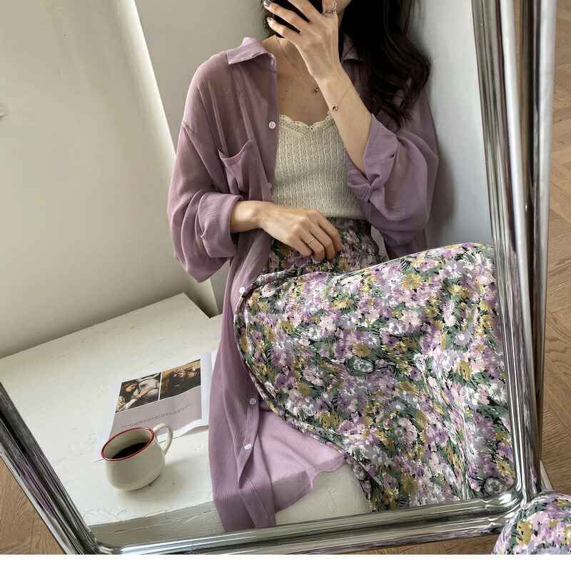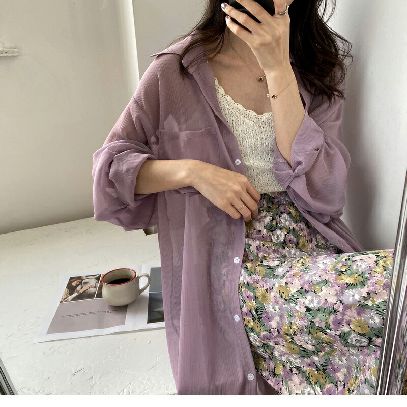ふわっと軽く、動くたびに揺れる \\冷房対策にもUV対策にも最適//ゆるシルエットレディースファッション トップス シャツ ブラウス