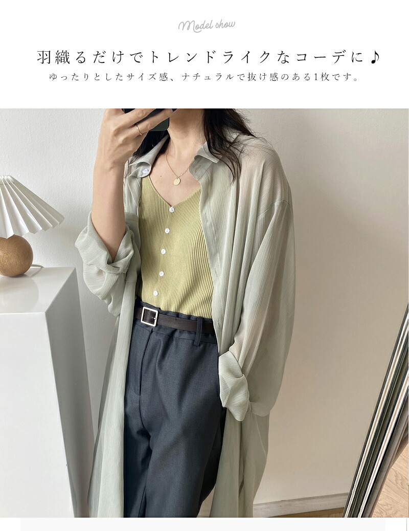羽織るだけでトレンドライクなコーデに肌をさりげなく透けさせて