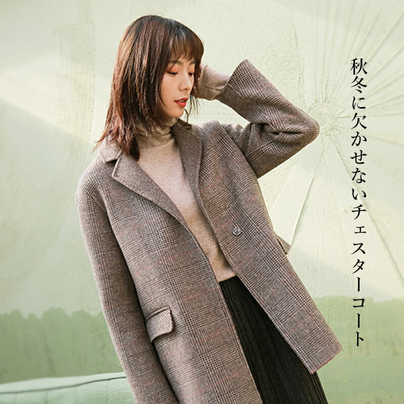 チェスターコート コート レディース リバーウールコート ウールコート チェック柄 タータンチェック 冬 きれいめ おしゃれ ウール 秋冬 アウター ギフト プレゼント ジャケット テーラードジャケッ