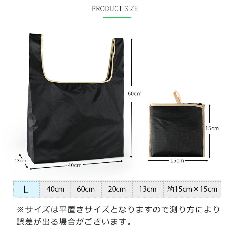 サイズ(約)L 横幅:40cm 高さ:60cm 持ち手:20cm マチ:13cm 折り畳み:約15cm×15cm
