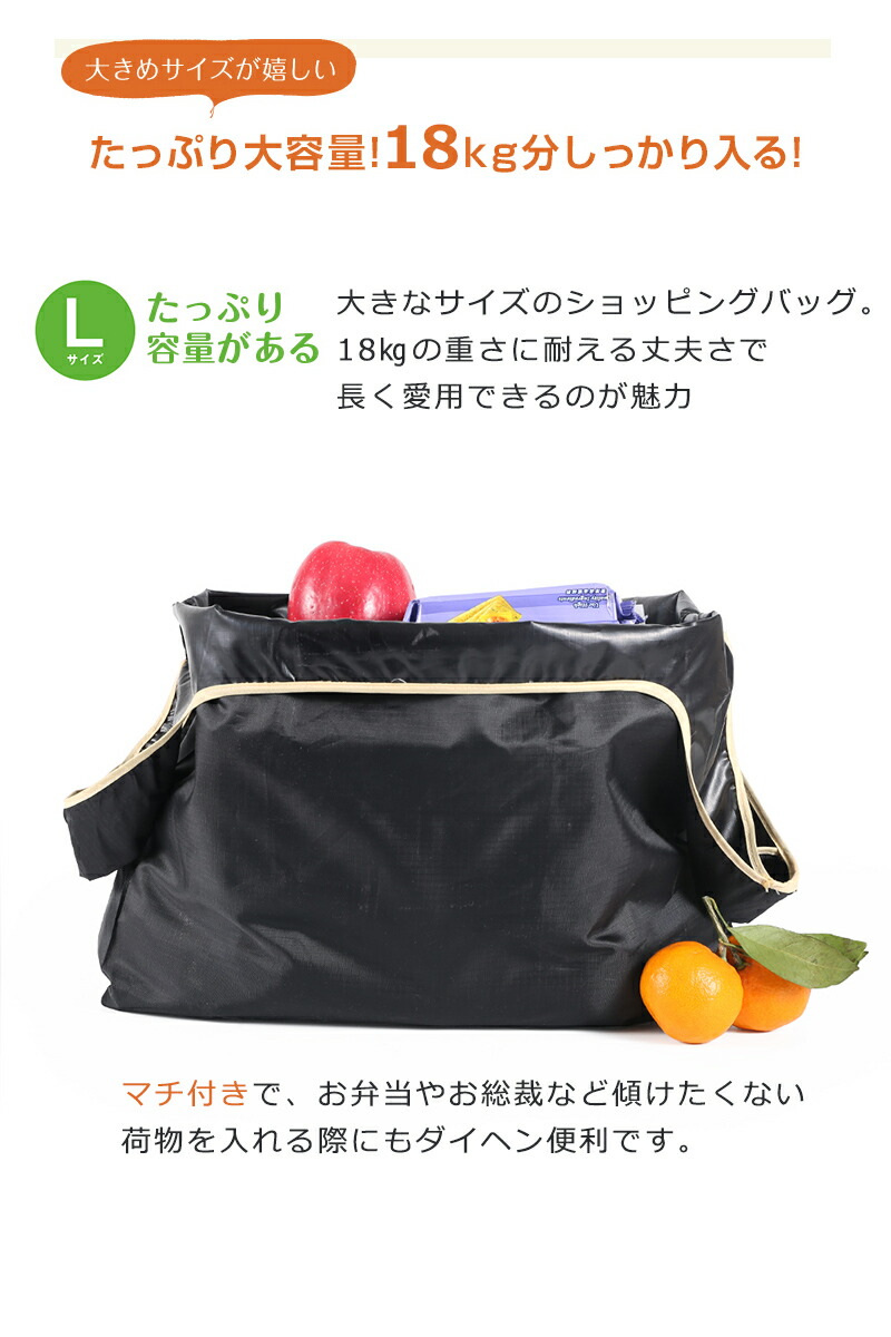 カゴいっぱいのお買い物をしても安心の大容量バッグ。軽くて、丈夫。何でも楽に入るのでちょっとしたお出かけにも便利!