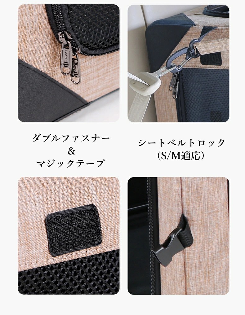 4面出入口のメッシュで通気性がよくて、暑くならず、蒸れることがなくて、ペットの様子も見えるので安心です。
