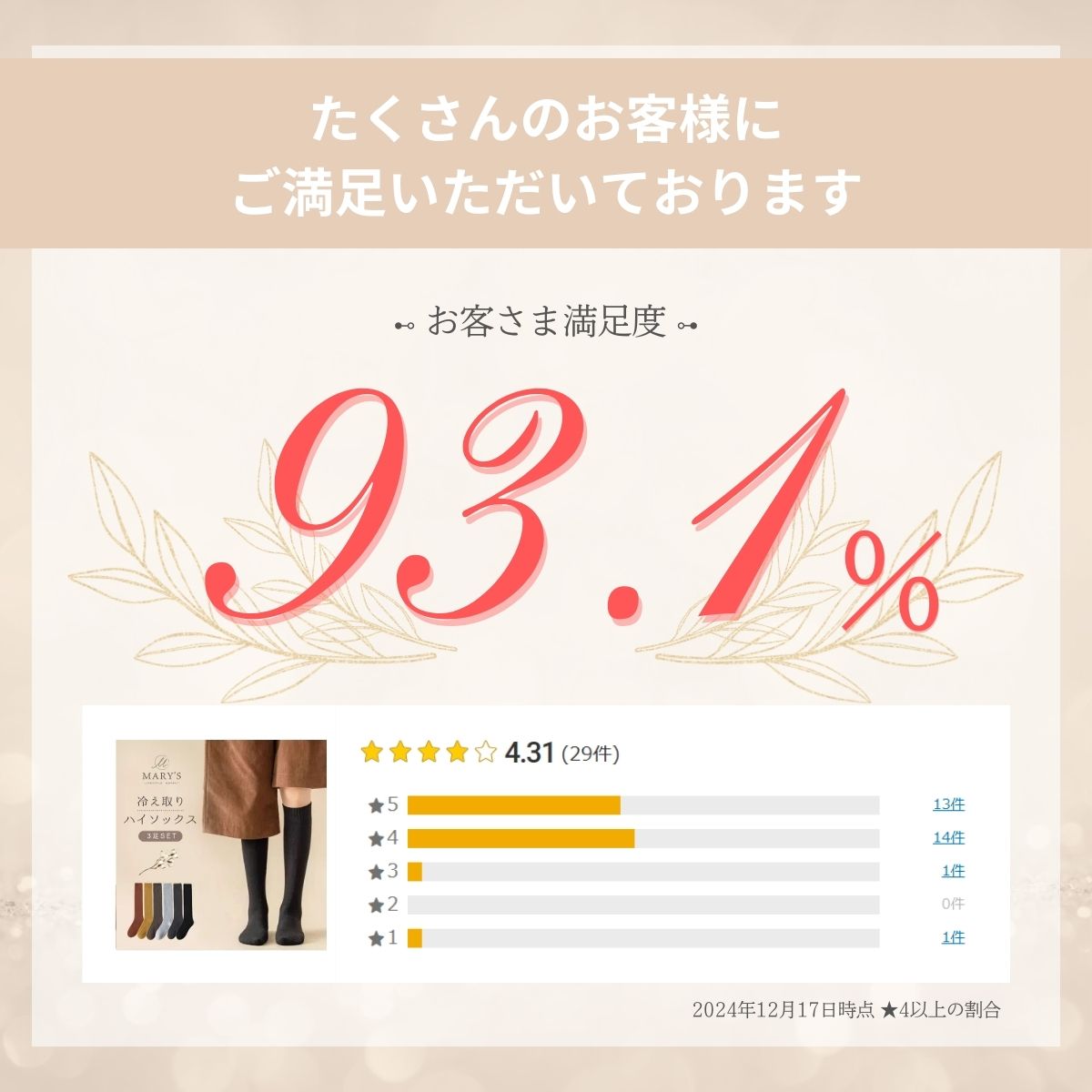 冷えとり靴下としても優秀なこちらのハイソックスは、秋冬の寒さ対策にぴったり。特に冷えが気になる方におすすめの厚手で保温性に優れたレディース靴下です。綿素材を使用し、蒸れにくいので、長時間履いても快適に過ごせます。黒やグレー、ライトグレーの落ち着いたカラーバリエーションで、オフィスや事務の場でも使いやすいデザインとなっています。
