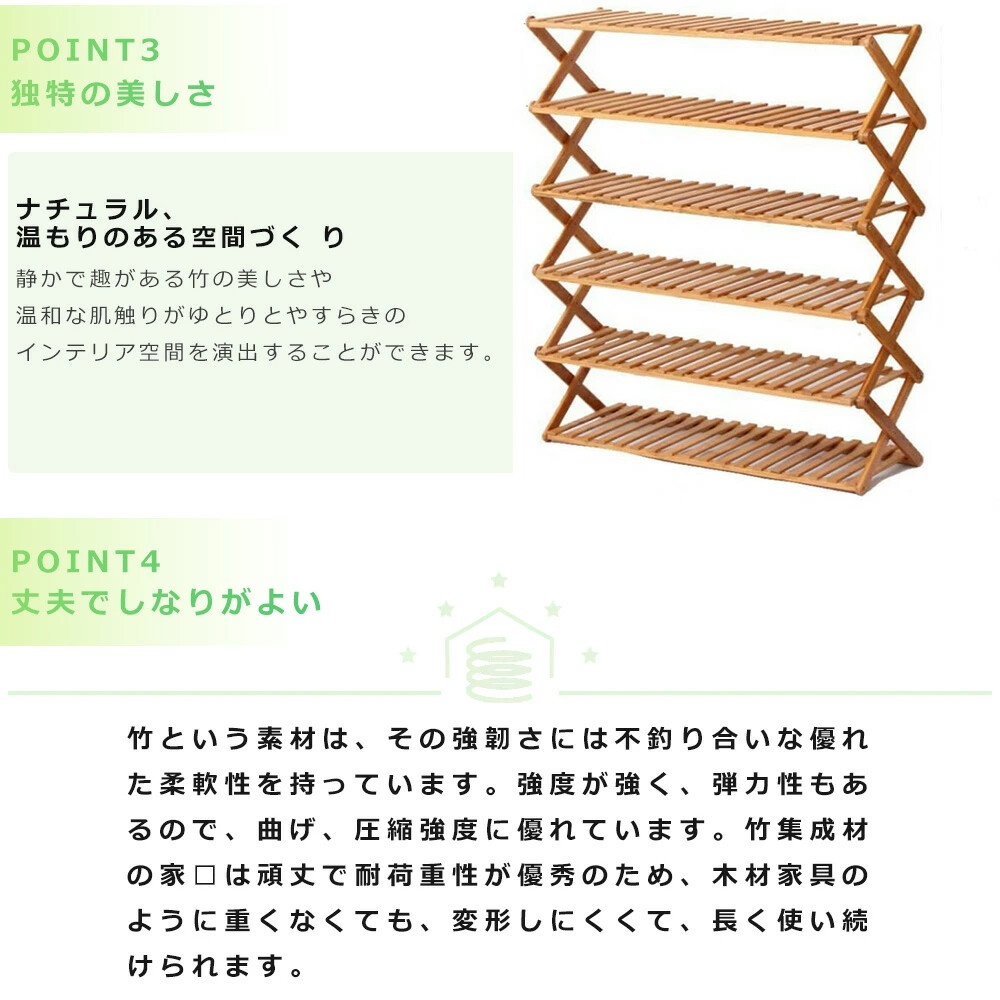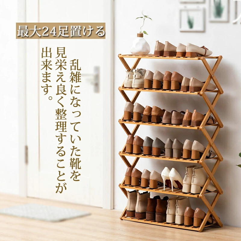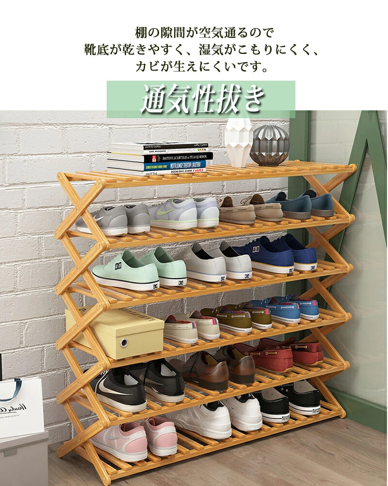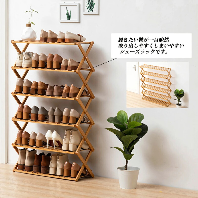6段の棚はそれぞれの靴に十分なスペースを提供し、お気に入りのフットウェアを美しく展示できます素材 竹サイズ ★5段