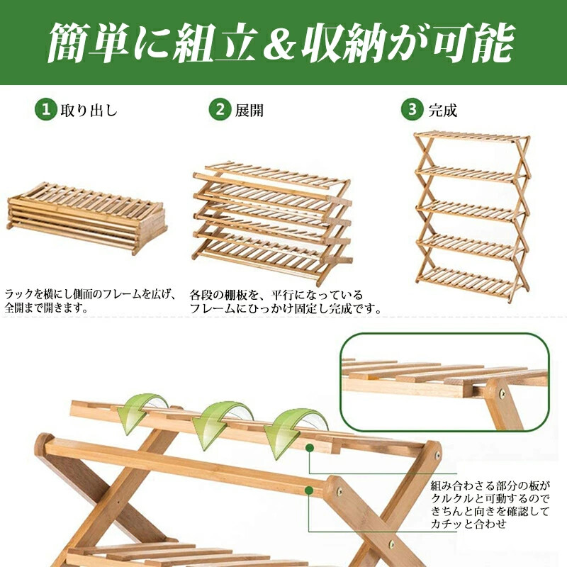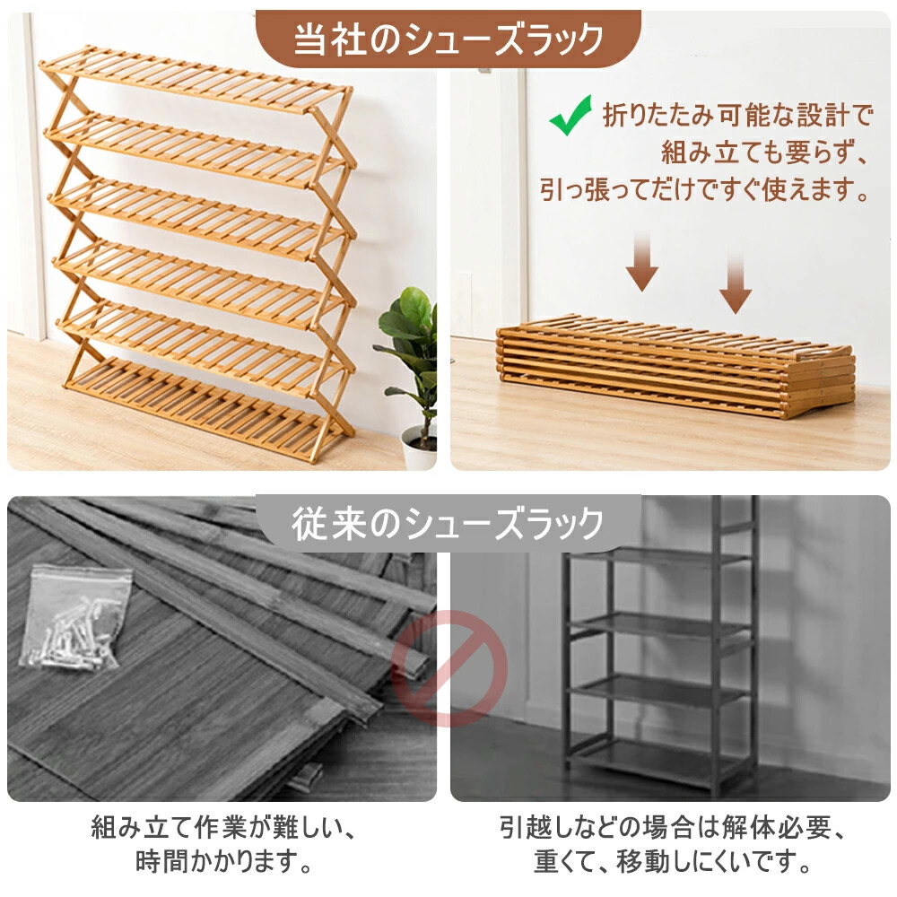 折畳式 完成品 ラック 靴ラック 組立不要 竹製 コンパクト 6段 5段 伸縮 しっかり 省 スペース 玄関収納 会社 シューズ収納 玄関家具 おしゃれ オープンラック