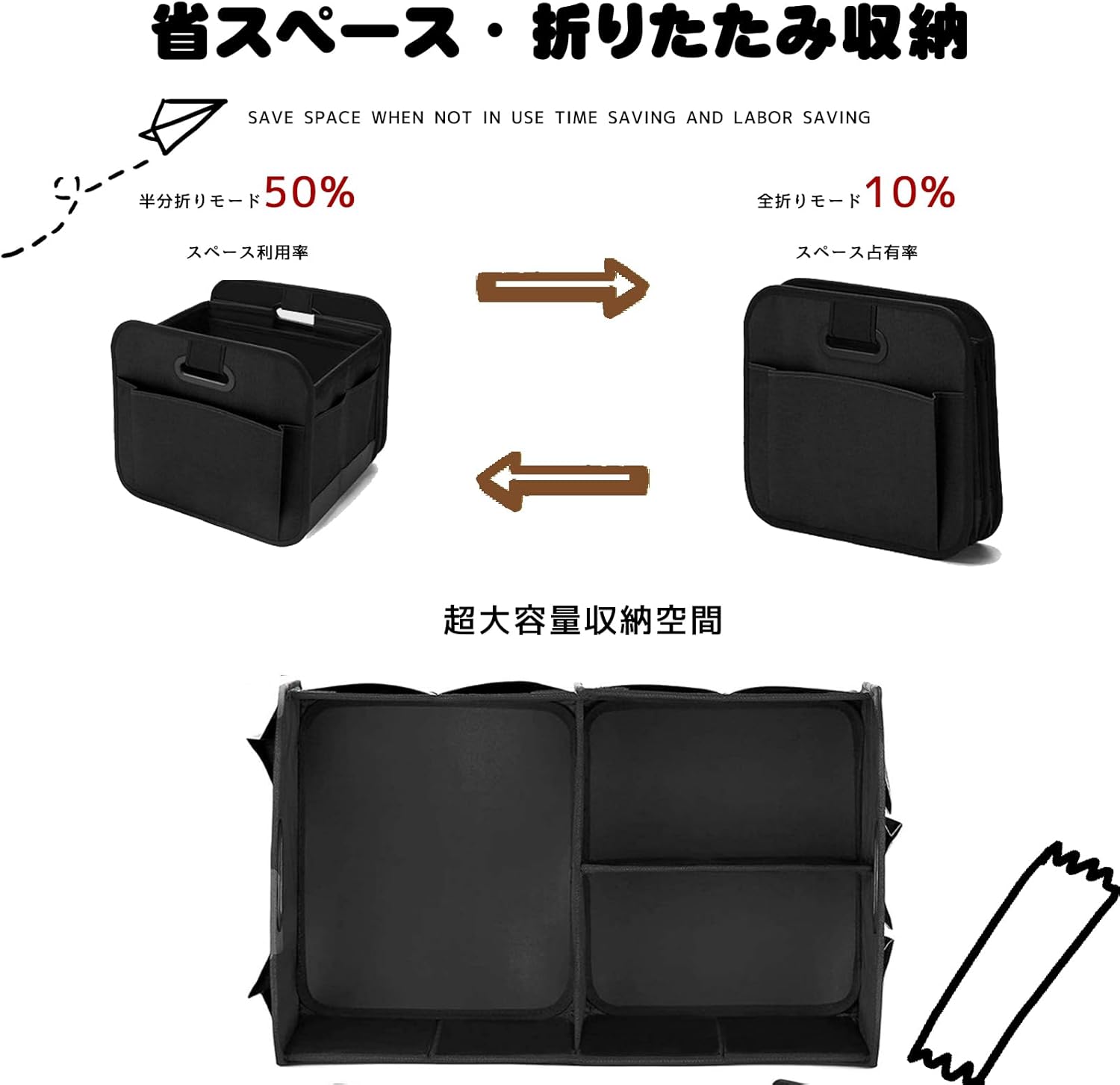 車トランク 収納ボックス オックス 防水 折りたたみ 収納ケース 大容量カートランク収納バッグ 収納ケース お手入れ簡単 ブラック